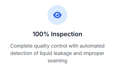 Our systems provide 100% inspection and automatic rejection of all products with defects such as liquid leakage or improper seaming, ensuring your brand reputation and customer satisfaction.